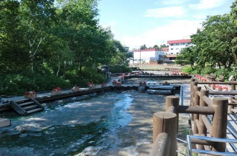 不知站外的绿荫是否给你带来一见如故的感觉。但到了川汤温泉站,可千万别错过北海道最著名的酸性泉质温泉——川汤温泉。