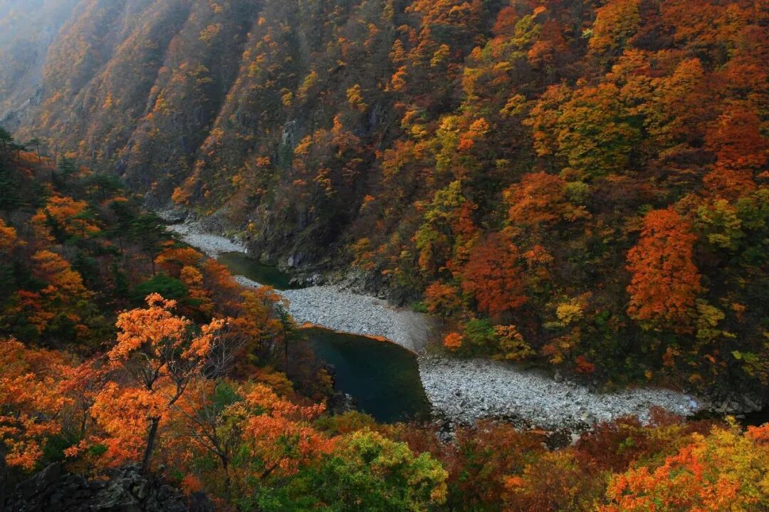 火车跨越长长的铁道,车站附近是漫山红叶的锦秋湖,或是治愈人心的汤田温泉乡。无论哪一个,看起来都乐趣无穷。