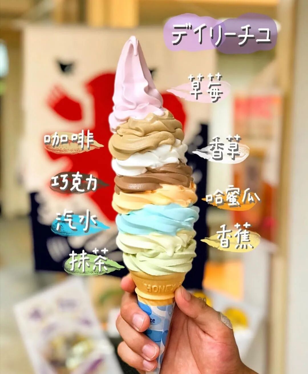 招牌是高达40厘米、重700克的八段式特大冰激凌,一次尝遍各种口味,过瘾!石原里美也超爱这家冰激凌店,在东京的城市宣传片中还打卡过。