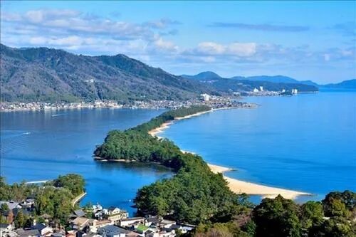 登高来到伞松公园,从胯下望去,以倒立的视觉欣赏天桥立,眼前仿佛呈现出连结天界的天桥。而从南端的飞龙观远眺,胯下看到的沙洲又是另一番姿态,宛若飞龙升天,甚是有趣。