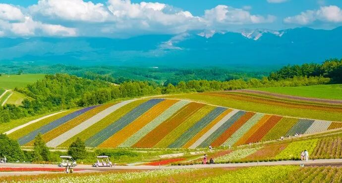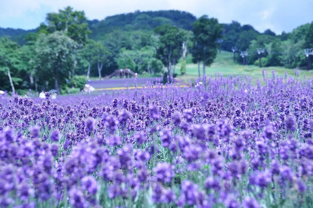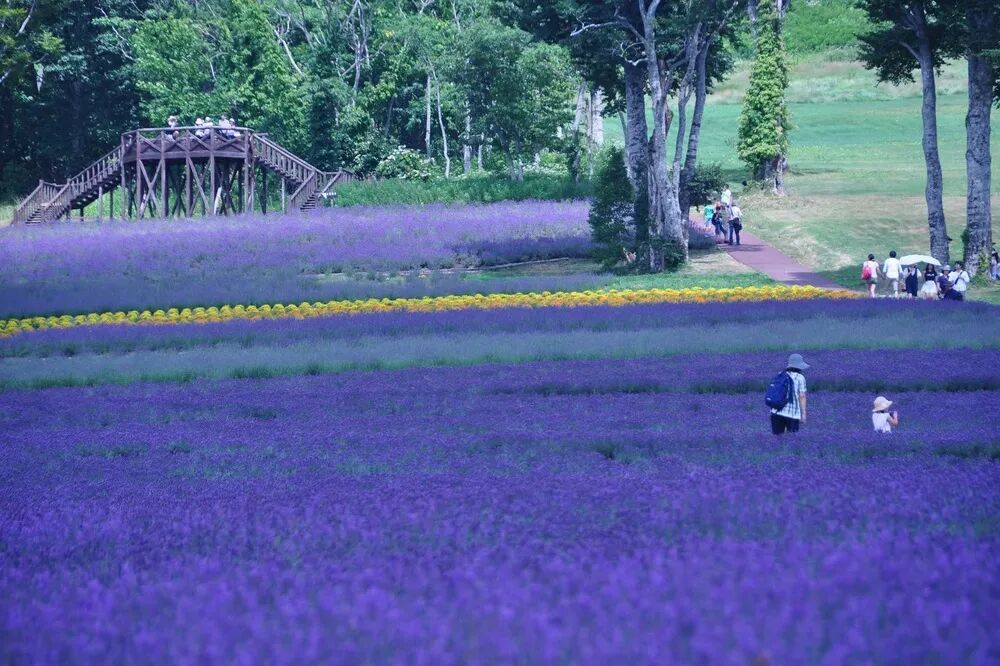 游人在其中驻足拍照,沉浸在薰衣草的芬芳中。园内还可以乘坐登山缆车从不同角度欣赏花田风景,更有在花田中进行的香气环绕的室外音乐会和薰衣草采摘体验。