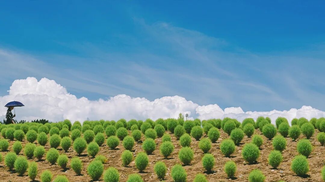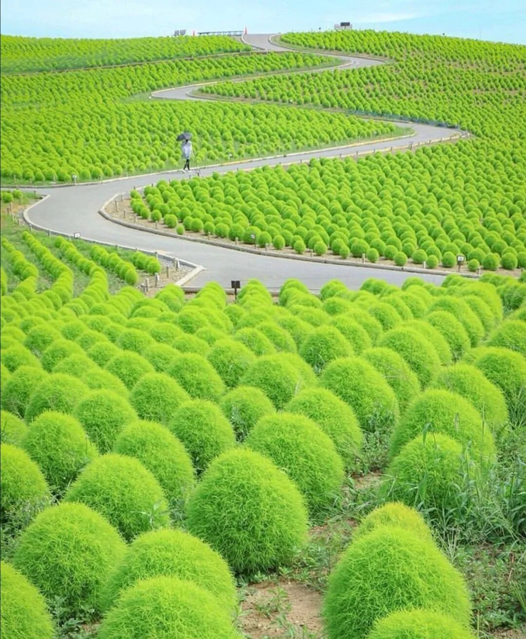 犹如毛茸茸的小圆球般的扫帚草铺满山坡,毛球花海看上去可爱又充满活力。公园内还有自行车道、儿童乐园、戏水广场等设施,非常适合夏季亲子出游。不仅能享受美丽的风景,还有丰富的户外活动。