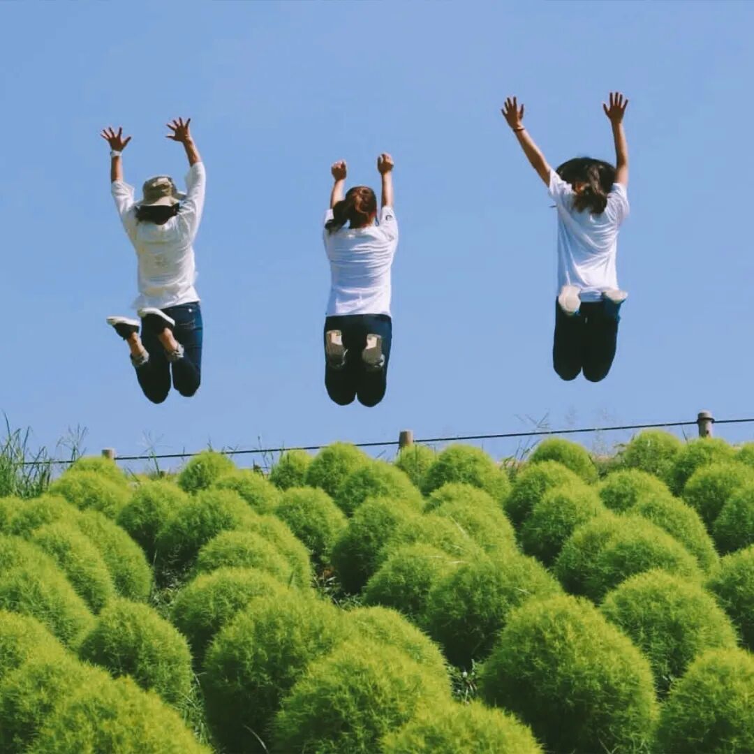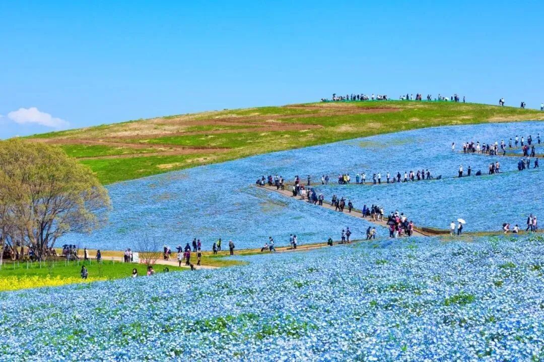 日立海滨公园最人气的时节虽然是四月蓝色的粉蝶花季,漫山遍野的纯净蓝色仿佛童话一般。但夏季绿意盈盈的景象同样吸睛。