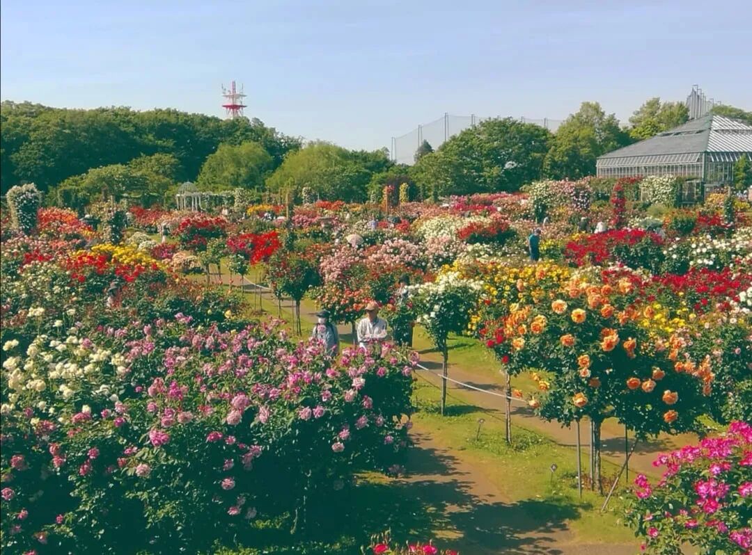 占地3万平方米,种植了近1500个不同品种,超过 1万株的蔷薇科植物,是日本超人气的玫瑰园。