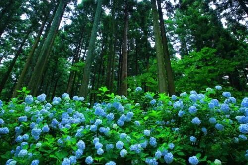 “陆奥紫阳花园”是日本规模最大的紫阳花观赏地。占地面积如同3个东京巨蛋!被杉树林环抱、长约2公里的散步道两侧,有约300种、3万株紫阳花争奇斗艳。