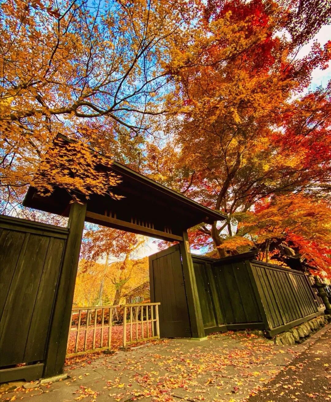 这里的红叶与武家屋敷的黑色板墙形成强烈色彩对比。充满历史感的街区和红叶组成风情独具的景色,仿若穿越到百年前的江户时代。