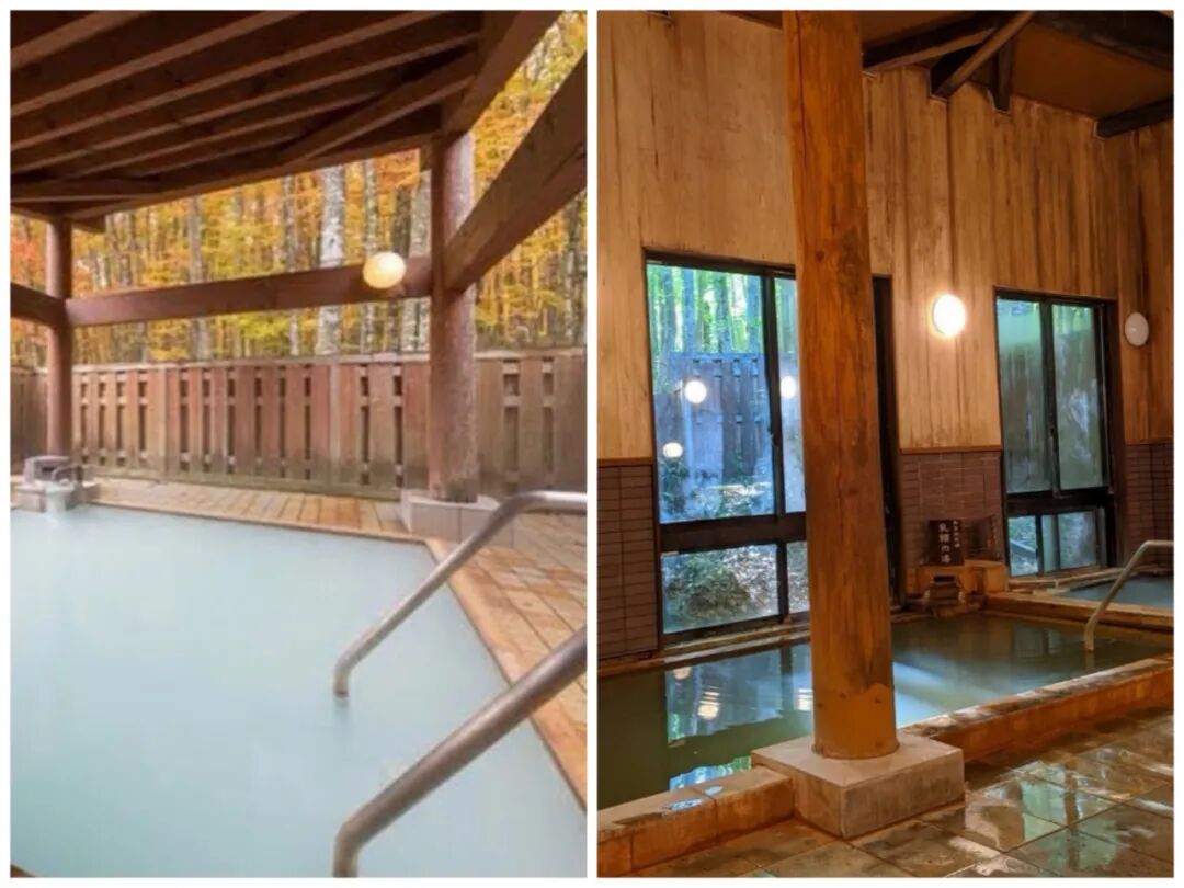 这里的温泉浴池种类丰富,有3个室内浴池、2个露天浴池和2个瀑布浴池,能享受到浓厚乳白色泽的温泉。
