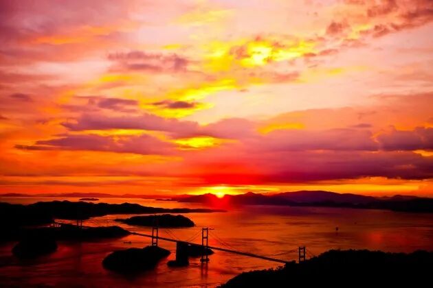 可能有些懂行的人已经猜到了,就是那条风景明艳动人、日本唯一可以骑车和步行横跨濑户内海的桥梁道路——西濑户自动车道,又被称作濑户内岛波海道。