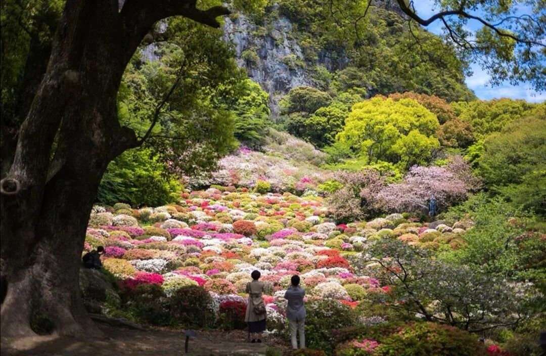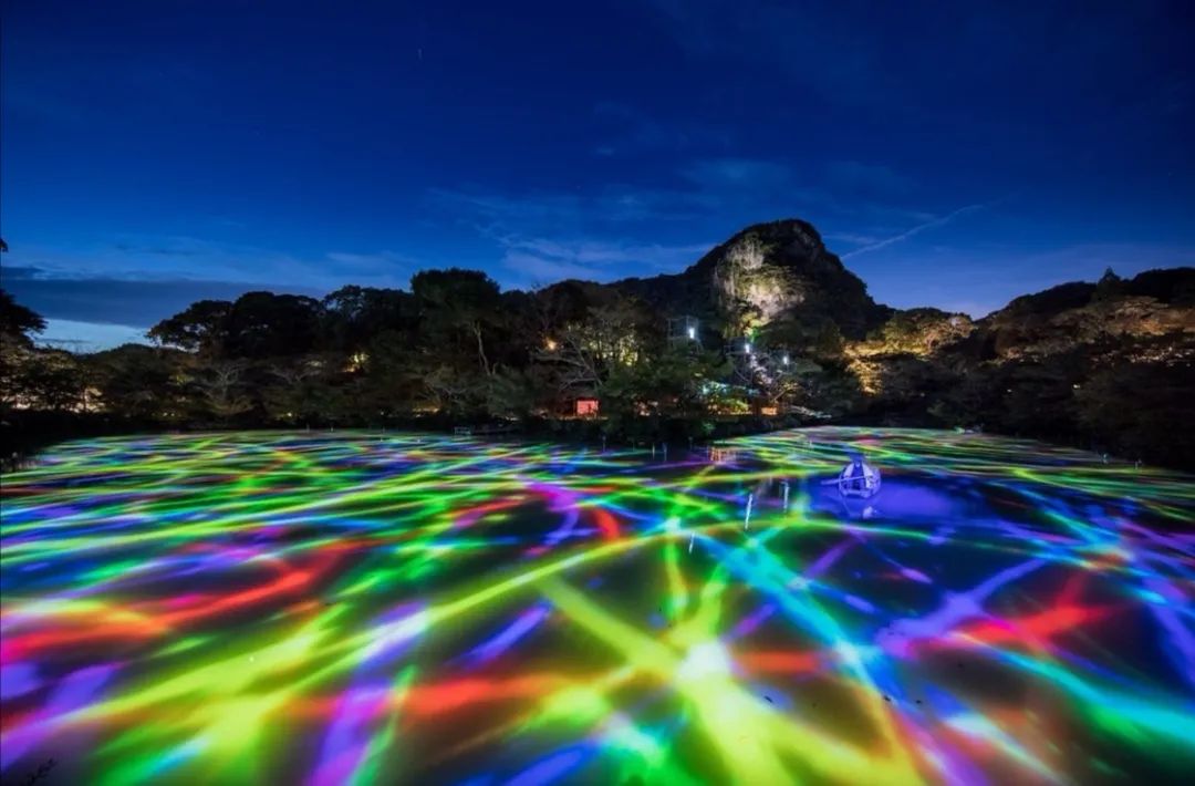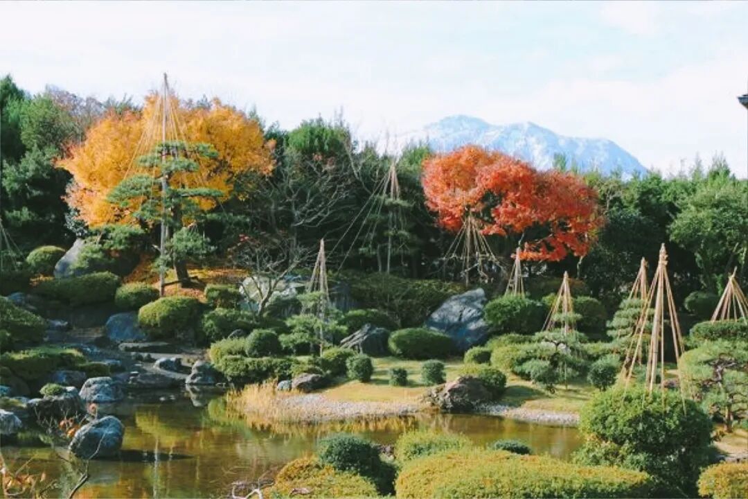 御船山乐园占地大约500,000平方米,借景御船山。庭园内植物随着四季流转,一岁一枯荣,带来园内变化的景象。春有樱花,秋有枫树,以这两季的景色最为梦幻。