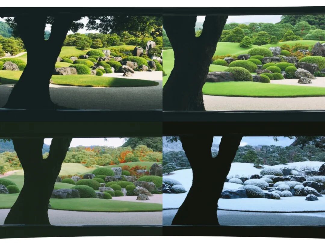 足立美术馆的庭园面积占了整个美术馆面积近二分之一,分为枯山水庭、苔庭、寿立庵庭、白砂青松庭、池庭和龟鹤瀑布庭六处,移步换景、独具匠心。