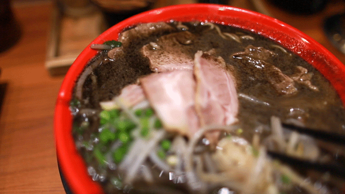除了原味拉面之外,小编还强烈推荐比一定要尝试这碗黑芝麻炸蒜油拉面,一大碗浓浓的墨汁色,就够引人注目的了,味道也和你平时吃到的拉面有很大的不同哦~