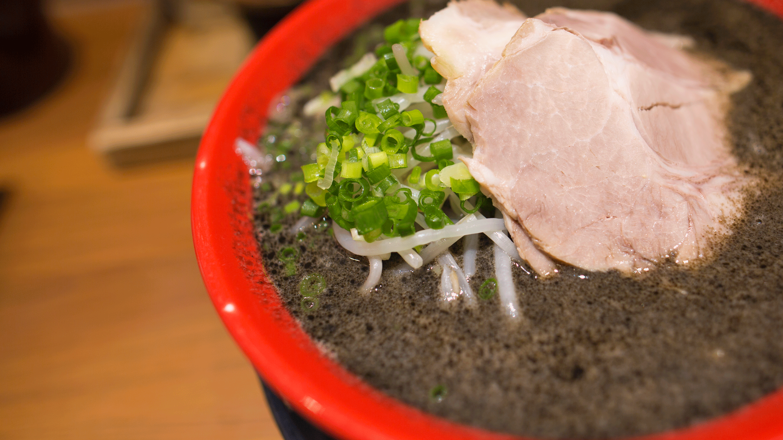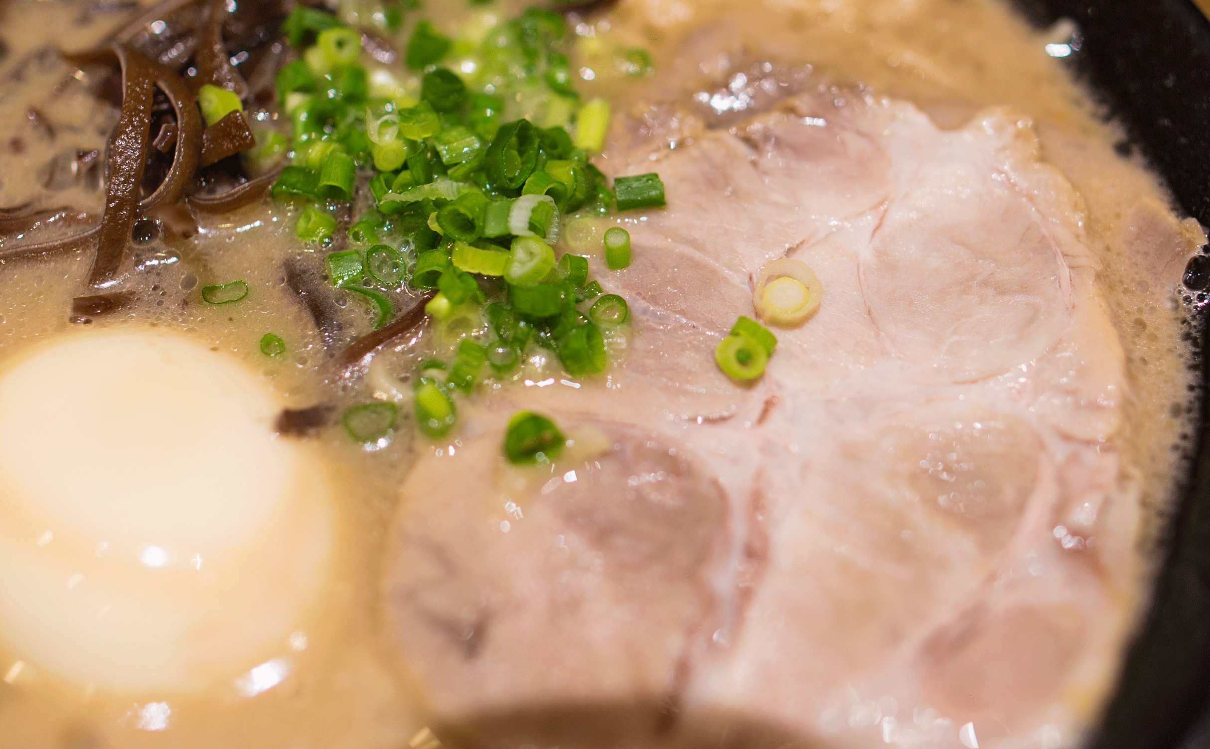 博多拉面最基本最热销的当然就是这款原味博多豚骨拉面。博多拉面是主要以豚骨汤及细面为原料的,最有特色的就是这乳白色的豚骨白汤。