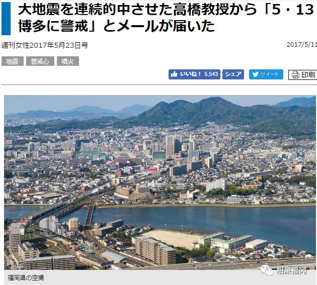 【大地震预测特别神的高桥教授传来5.13博多要警戒的email】