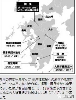 说是樱岛的火山比较活跃,会喷发。在福冈县博多,北九州周边可能有大规模的地震