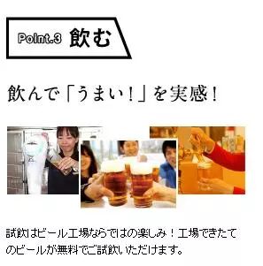 福冈县的朝日啤酒工厂坐落于福冈市博多区,距离市中心很近,可以参观到朝日啤酒的制造到装罐的过程。并且可以喝到最新鲜的刚刚酿好的啤酒哦。喜欢啤酒的你不要错过!特别的是,会专门向开车的人提供各种无酒精的饮料,小朋友也有精美的纪念品,老少皆宜,是一个值得全家一游的好去处。周六、日和国定假日是工厂的公休日,一部分的制造过程改以影片欣赏。