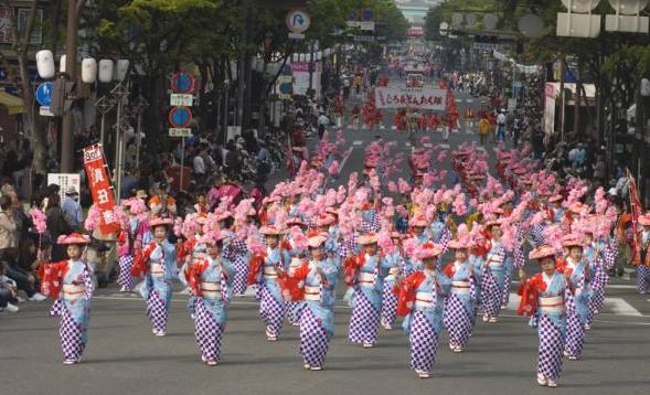 福冈一年四季各有看点。因为位于日本南端,樱花开放的季节通常比本州岛要早一些,有时从3月中旬就开始绽放;夏天的山笠祭是福冈最盛大的传统节日。