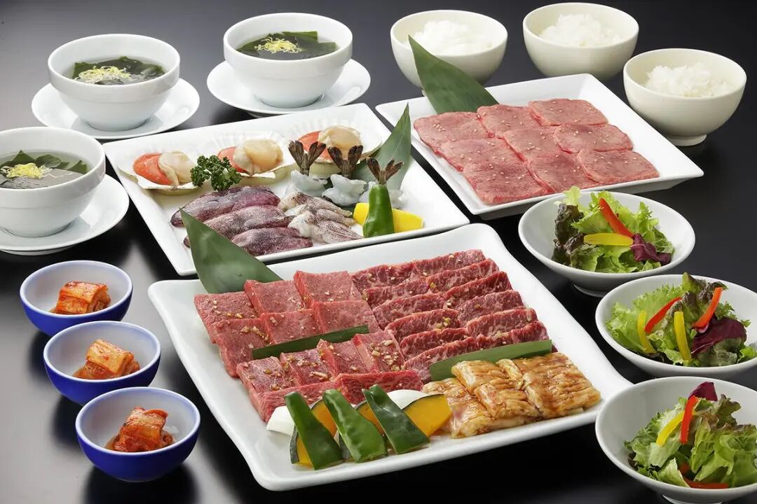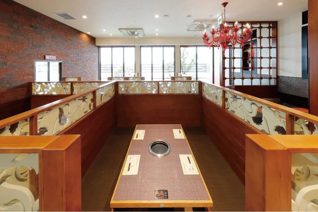 除了以黑毛和牛为中心的套餐、拼盘和宴会菜单外,还提供摆满新鲜蔬菜和缤纷水果的沙拉自助餐。可享受适合各种场合的烤肉。店内最多可设328个坐席,还设有两间宴会厅,配有显示屏和音频设备,最多可供170人使用。此外,还有可容纳4至14人的各种包间,便于纪念日和生日时使用。