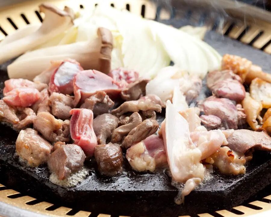 以新鲜优质的黑萨摩鸡为主,可以制成微烤鸡肉、半熟鸡肉、烤鸡肉并搭配秘制酱汁。烧烤采用独创的樱岛熔岩盘设计,由顾客自己动手,其味道因远红外线效应而浓缩。另有鹿儿岛中央站店和二官桥通店。