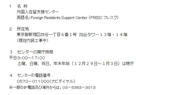 新冠疫情的爆发,让许多在日华人陷入了艰难的困境,甚至有些人面临被辞退,内定取消,以及因找不到工作签证即将过期的种种问题。以往大家问询无门,不过自从7月6号起,日本政府将会在东京都新宿区的四ッ谷车站前设立在日外国人支援中心,以帮助在日外国人解答各种疑难问题。在此小编分享该中心的联系方式给大家,如果有在日生活出现困境的华人可以咨询该中心获取正确的信息。