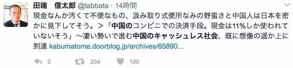 感觉中国人会说用现金又脏又不方便,从而看不起野蛮的日本人。