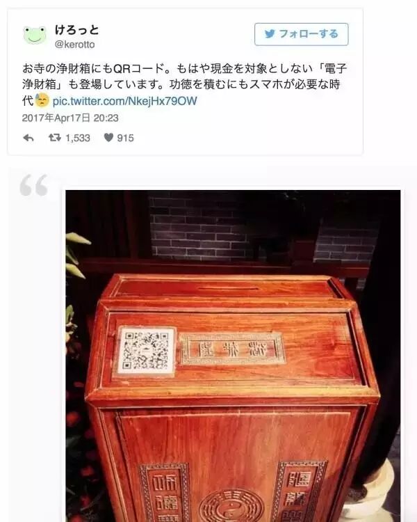 5、寺庙投香火钱也是二维码,甚至不收现金的电子箱也出现了。现在这个时代连积攒功德都有要智能机(汗)