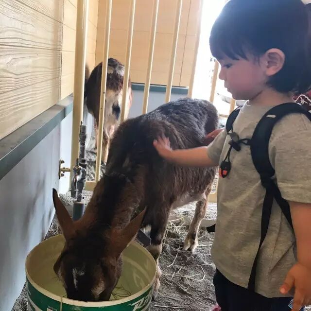 在动物园和动物亲密接触。