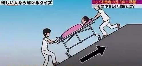 回忆一下,我们曾经在医院看见医护人员推病人的车时,是头在前还是脚在前呢?日本医院规定,推动病床时,一定要病人脚在前,头在后。这是为什么呢?