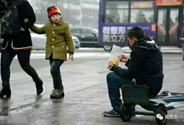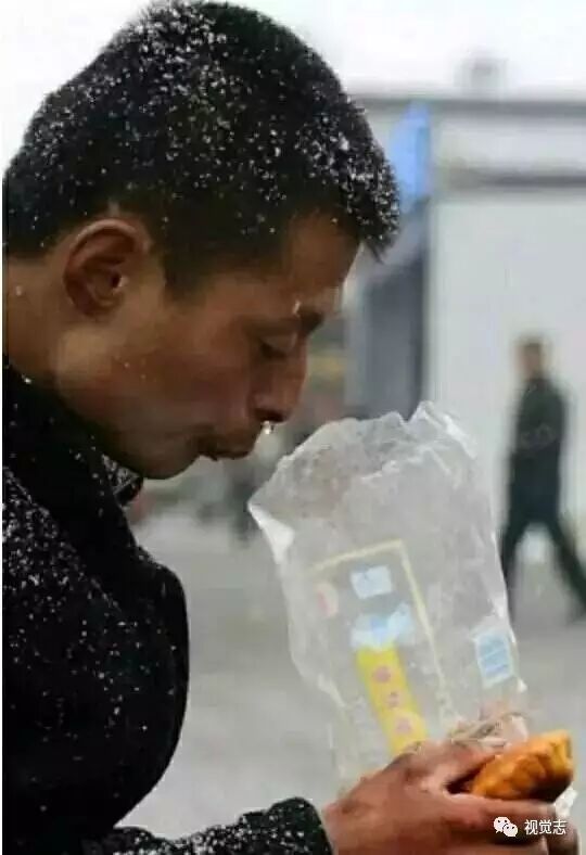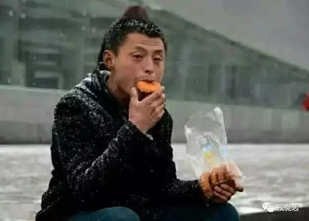 2014年冬天,一位农民工兄弟顶风冒雪守在火车站等生意。他脸色蜡黄直流鼻涕,偶尔哆嗦一下,大口地吃着蛋糕……