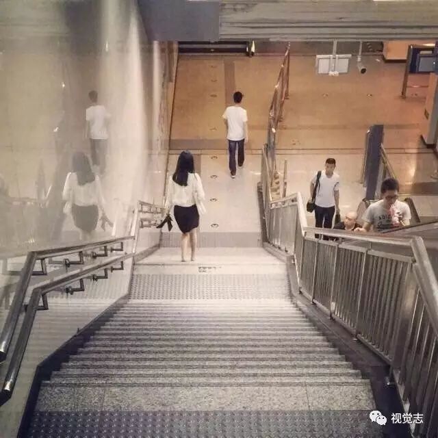 加完班回家的姑娘,或许是太累了,提着高跟鞋光脚走下楼梯,赶最后一班地铁。