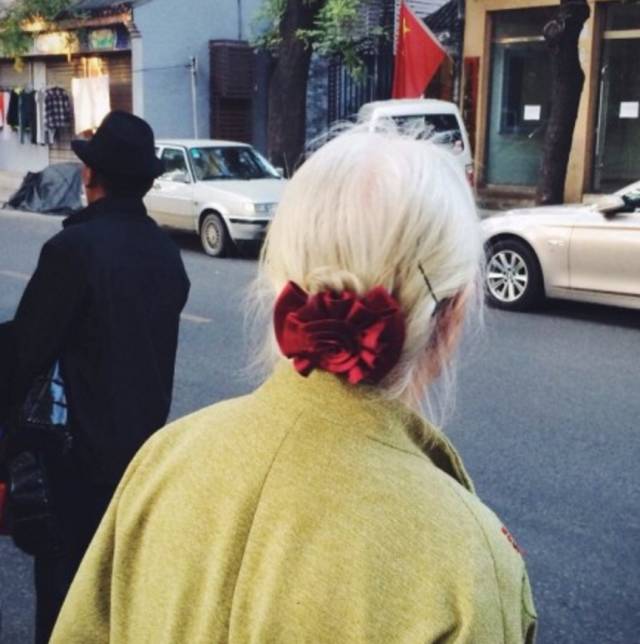 北京街头遇到的一位老奶奶,一看背影就知道是个很美的姑娘,她一定很热爱生活吧。
