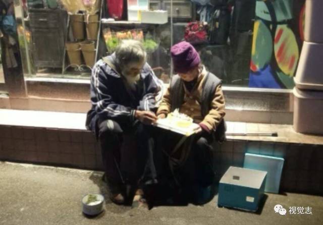 平安夜在长沙街头拍到的一幕,一位长期在街上乞讨的老爷爷在给老奶奶过生日。