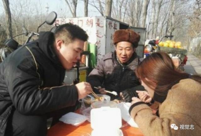 学校附近修鞋的爷爷行动不方便,中午吃不上热饭,于是,这对情侣每天都来给爷爷免费送热饭菜,还陪爷爷一起吃饭。