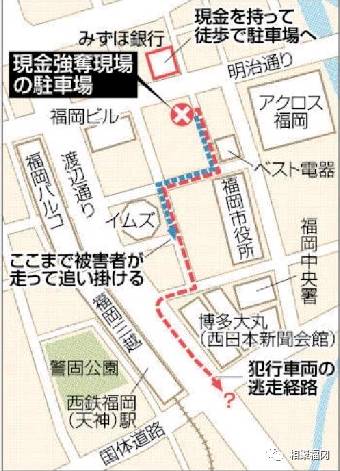 案发现场距离JR博多站约2.5公里,是福冈最大的商业街天神的一角。周边商业设施、办公楼林立,福冈县中央警署以及福冈市政府均在附近。