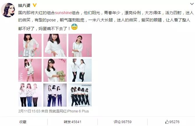 小编回国几天,咋发现世界的眼光都变了。。比如追星的品味。无料看微博,发现微博已经被“sunshine”的组合刷屏了,这个组合5人分分钟秒杀tfboys。