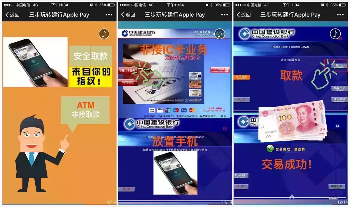 而中国建设银行还支持通过 Apple Pay 功能进行取款,只要在建行 ATM 上选择 “非接 IC 卡业务”,再将手机放置在读卡器上,再通过指纹验证即可进入 ATM 取款。