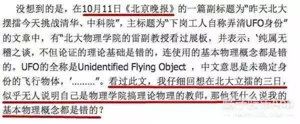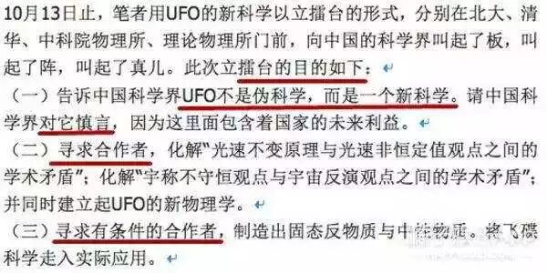 他阐述了自己“打擂”的目的:提出UFO不是伪科学,寻求有力合作。