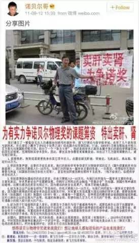 同时在微博上求助、寻找途径,为了自己的研究宣传,梦想就是争夺诺贝尔奖。