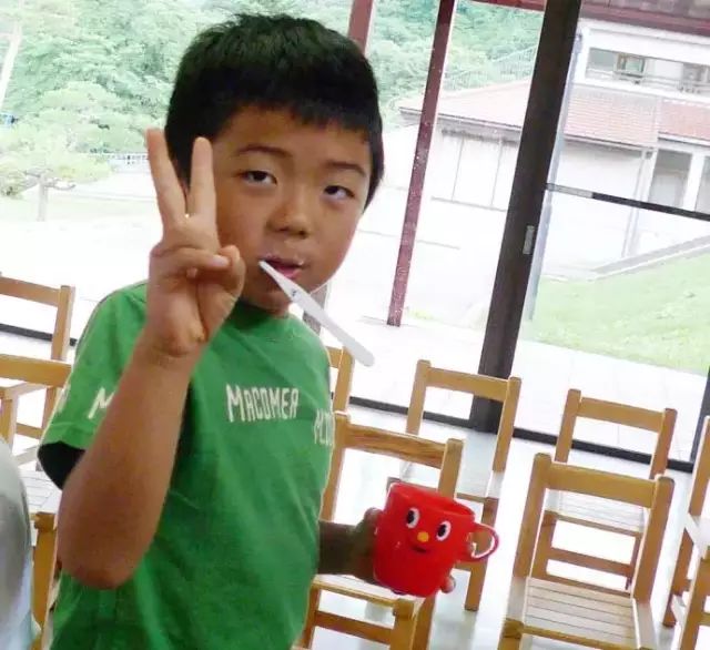 不知道你们注意没有,每个日本小朋友的桌子上,都有一个小小的牙缸,吃晚饭后,他们就立刻刷牙,饭堂里就有敞开式的水池,很方便。这样的卫生习惯,在学校里就养成,一生都会成坚持的。
