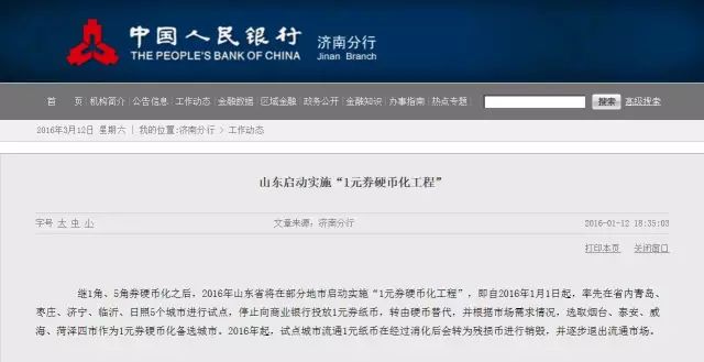 中国人民银行济南分行今年1月份发布通知:继1角、5角券硬币化之后,1月1日起,山东省在青岛、枣庄、济宁、临沂、日照5个城市进行“1元券硬币化工程”试点,停止向商业银行投放1元券纸币,转由硬币替代。目前该项工作在上述试点城市已经相继启动。