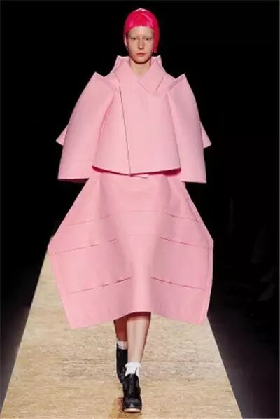 她将日本典雅沉静的传统、立体几何模式、不对称重叠式创新剪裁,加上利落的线条与沉郁的色调,与创意结合,呈现很意识形态的美感川久保玲,是一个特殊的例外:她既没有出去学别人的模式,也没有经过正统的训练,但在东京的本土上,她做出的又绝不是纯民族的东西。