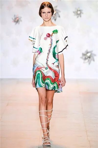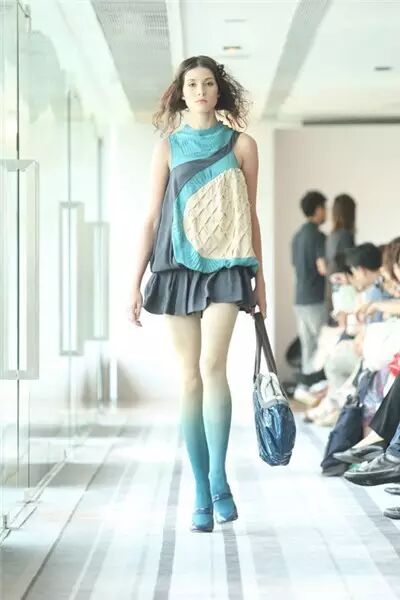 津森千里设计的衣服和其他人比起来透着一种小清新的气质,像是桥下流淌的温柔的河水,在一群奇装异服里杀出一条甜美的路。