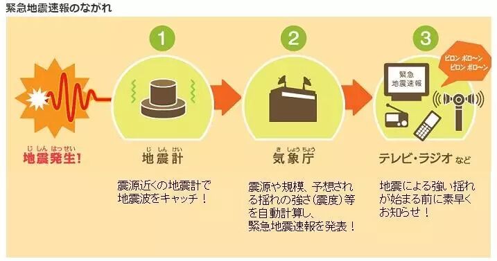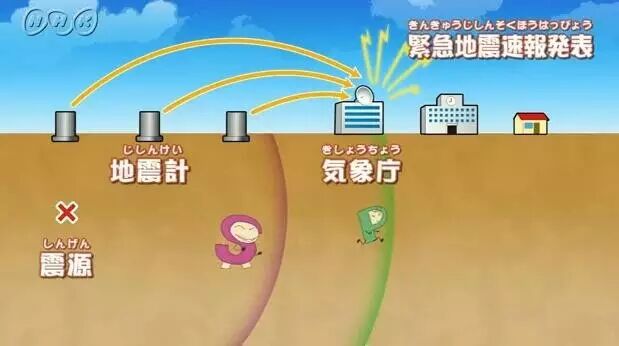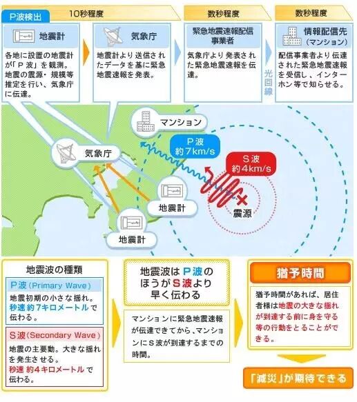 地震发生的时候,有两种波,一种是p波,一种是S波。P波跑的比较快,可以先被检测到。检测到之后日本通过发达的通信网络迅速把信息传达给周边地区的老百姓。
