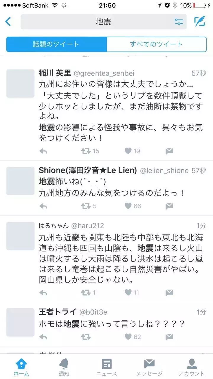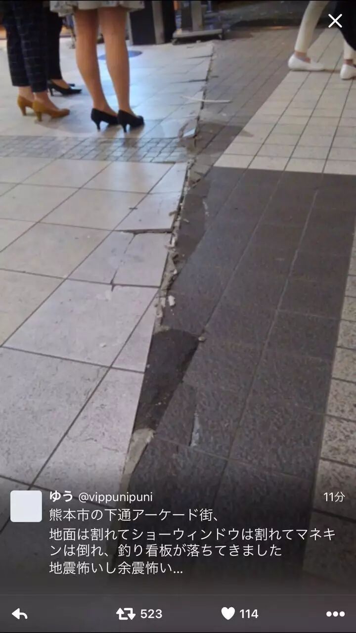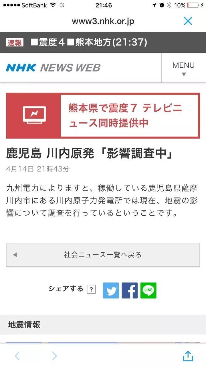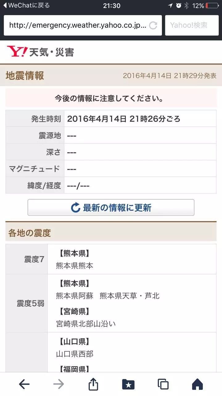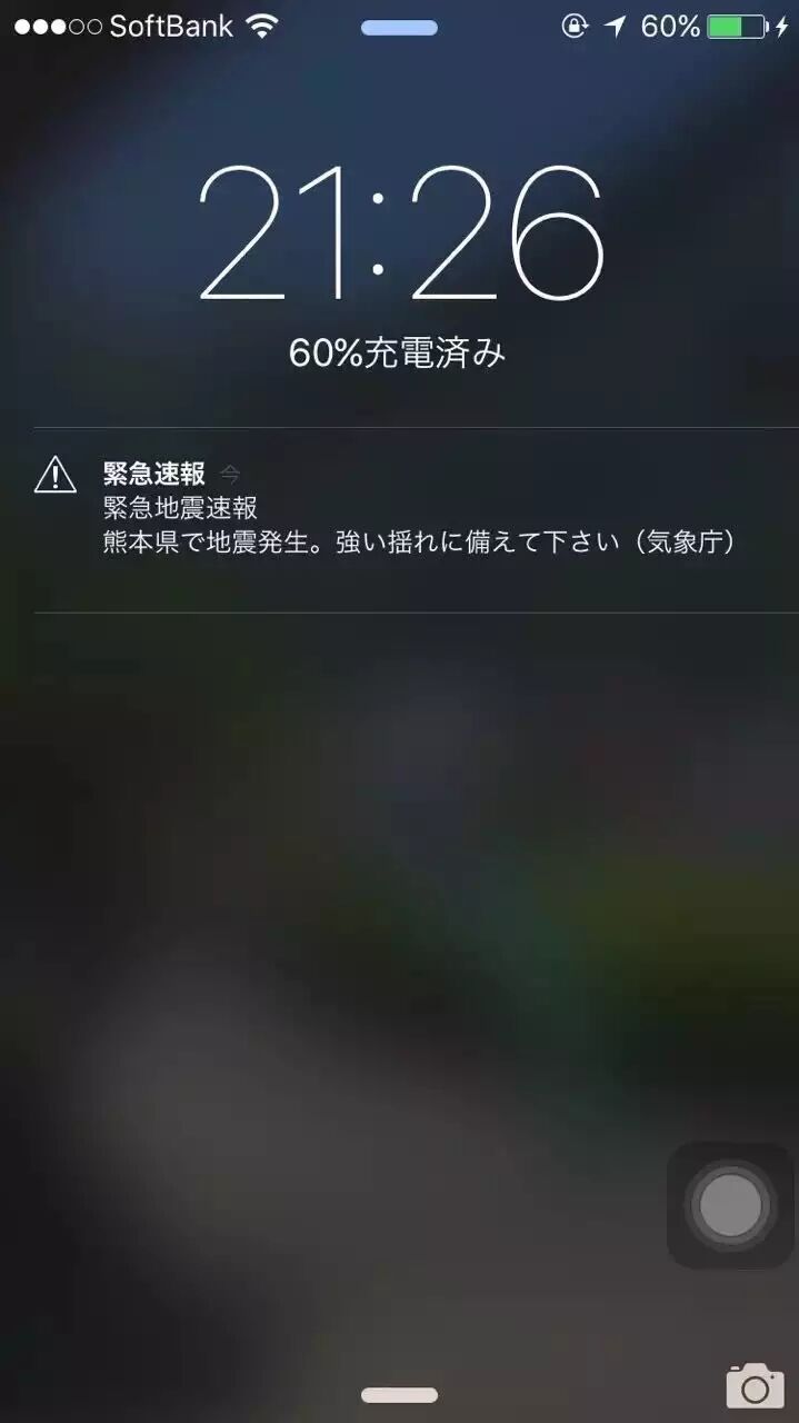 拿起手机一看熊本地震了手机屏幕上显示熊本地震了。仔细一听楼下老婆的手机也在报警。