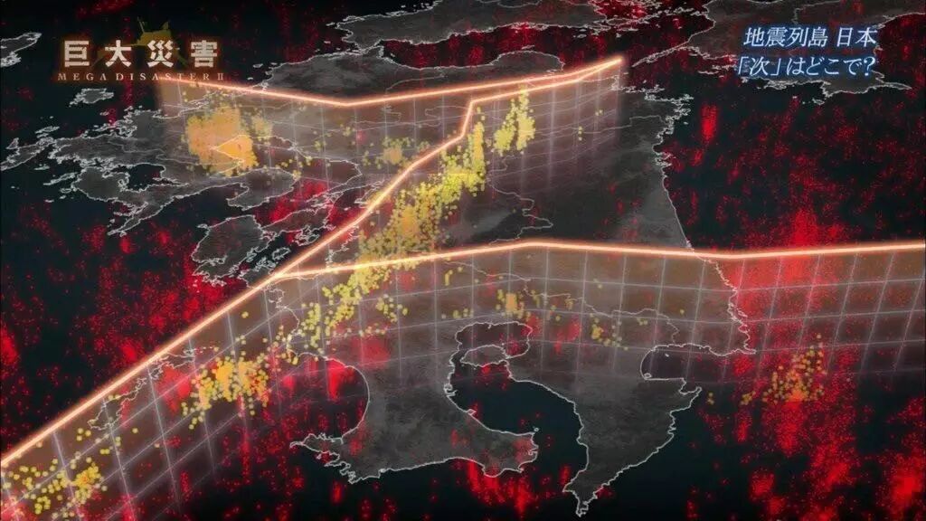 上面这个图片是今天晚上的地震发生地点图片。下面这个是以前他们的电视节目里面说的下一次日本的地震将在什么地方发生?