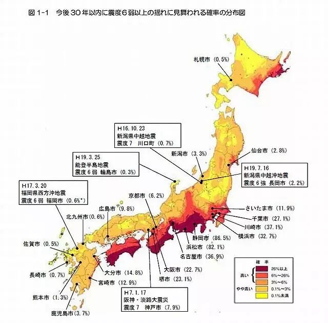 电视上老在说东京和大阪将来会有一场大地震。看下面的图我们是不是对我们能在福冈表示感觉很幸运那?