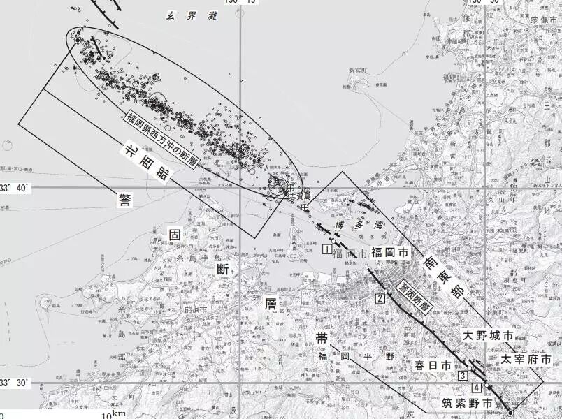 福冈最有名的应该是【警固断层】几乎纵穿了整个福冈市中心一直延伸到博多湾。志賀島正式在这个断层上。所以2005年的地震这里的山体有所破坏。大家去这个岛的时候可以围绕着这个岛转一圈。会在环岛的路上看到一个地震纪念碑。哎,小编的家在宇美断层上,买房子前早看看就好了。你们得感谢遇到我这么好的小编。