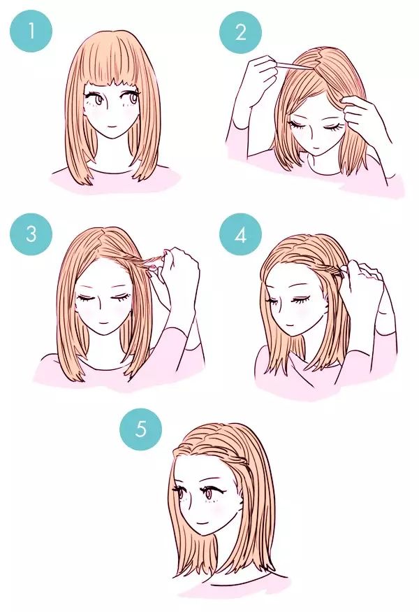 ❀刘海编成小辫子放到耳朵后面,有夹子固定好,这个和第一个发型很像,就是一个是扭起来的,一个是编起来的,手残党请自动选择第一种!