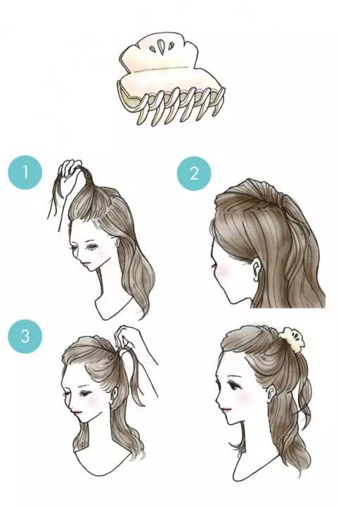 ❀顺着头发的中间,弄一束头发。然后往后面卷起来(注意不是卷成丸子头哦),再用发爪固定住就OK啦!特别知性的感觉!