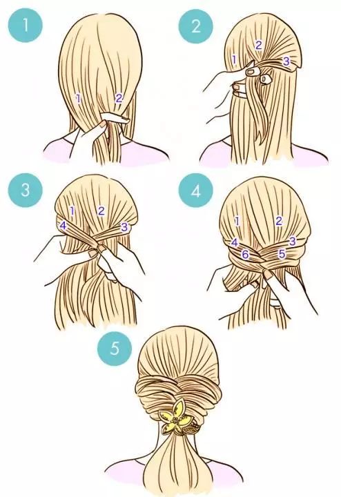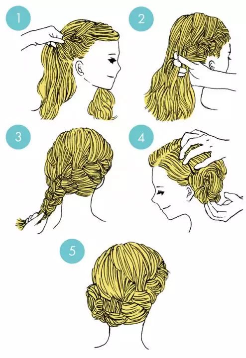 ❀先把两遍的头发编成两个小辫子再用皮筋绑在一起。然后再把剩余的头发饶进里面去,最后用螺旋夹把头发固定就好。看上去就温婉贤惠有木有!