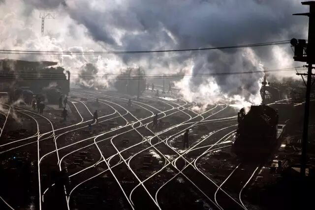 1981年,黑龙江,哈尔滨。哈尔滨火车站的蒸汽。因为中国有大量的煤炭供应,所以大多数火车都是由蒸汽驱动。